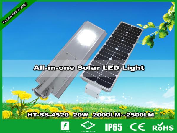 China Hitechled 20W Smart All-in-one Solar LED Street Light | Farola Solar De Jardin HT-SS-4520 wholesale